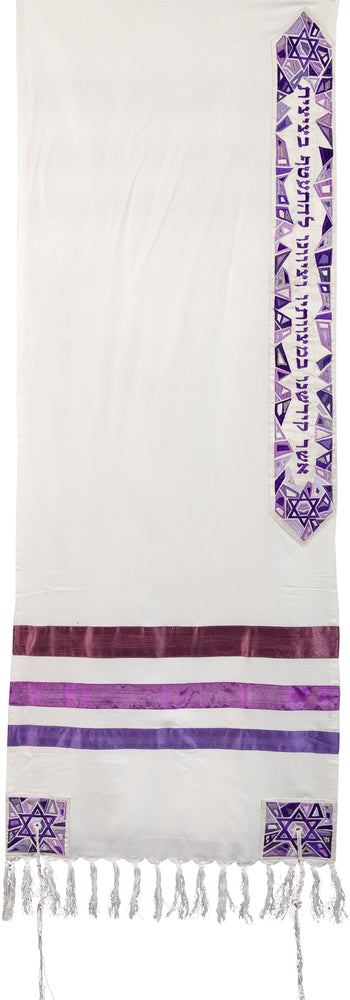 {"id":211710574636,"title":"Emanuel Embroidered Tallit, Magen David-- Purple (EM-TAE1P)","handle":"emanuel-embroidered-tallit-magen-david-purple-em-tae1p","description":"\u003cp\u003eThis graceful tallit is a beautiful way to express your Judaism as well as your personal style. The tallit is cream raw silk embroidered with a Magen David pattern on a geometric crystal background in shades of purple . The design adorns the tallit's corners and neckband, which features the Hebrew inscription Asher Kidshanu BeMitzvotav VeTzibanu Lehitatef BeTzitzit\u003c\/p\u003e \u003cp\u003eThe gorgeous tallit comes with a matching bag and kippa.\u003cbr\u003e\u003cbr\u003e\u003c\/p\u003e \u003cp\u003eSize:\u003cbr\u003e20\" x 75\"\u003c\/p\u003e","published_at":"2018-01-20T06:01:30-05:00","created_at":"2018-01-20T06:01:32-05:00","vendor":"Yair Emanuel","type":"P","tags":["Hand woven Raw Silk","Tallit","Woven Cotton And Silk"],"price":15000,"price_min":15000,"price_max":15000,"available":true,"price_varies":false,"compare_at_price":null,"compare_at_price_min":0,"compare_at_price_max":0,"compare_at_price_varies":false,"variants":[{"id":1489850204204,"title":"Default Title","option1":"Default Title","option2":null,"option3":null,"sku":"EM-TAE1P","requires_shipping":true,"taxable":true,"featured_image":null,"available":true,"name":"Emanuel Embroidered Tallit, Magen David-- Purple (EM-TAE1P)","public_title":null,"options":["Default Title"],"price":15000,"weight":2,"compare_at_price":null,"inventory_management":"shopify","barcode":"","requires_selling_plan":false,"selling_plan_allocations":[]}],"images":["\/\/riverdale-judaica.com\/cdn\/shop\/products\/tae1p__20232.jpg?v=1593195710"],"featured_image":"\/\/riverdale-judaica.com\/cdn\/shop\/products\/tae1p__20232.jpg?v=1593195710","options":["Title"],"media":[{"alt":"Emanuel Embroidered Tallit, Magen David-- Purple (EM-TAE1P) - Riverdale Judaica","id":702206640172,"position":1,"preview_image":{"aspect_ratio":0.35,"height":1000,"width":350,"src":"\/\/riverdale-judaica.com\/cdn\/shop\/products\/tae1p__20232.jpg?v=1593195710"},"aspect_ratio":0.35,"height":1000,"media_type":"image","src":"\/\/riverdale-judaica.com\/cdn\/shop\/products\/tae1p__20232.jpg?v=1593195710","width":350}],"requires_selling_plan":false,"selling_plan_groups":[],"content":"\u003cp\u003eThis graceful tallit is a beautiful way to express your Judaism as well as your personal style. The tallit is cream raw silk embroidered with a Magen David pattern on a geometric crystal background in shades of purple . The design adorns the tallit's corners and neckband, which features the Hebrew inscription Asher Kidshanu BeMitzvotav VeTzibanu Lehitatef BeTzitzit\u003c\/p\u003e \u003cp\u003eThe gorgeous tallit comes with a matching bag and kippa.\u003cbr\u003e\u003cbr\u003e\u003c\/p\u003e \u003cp\u003eSize:\u003cbr\u003e20\" x 75\"\u003c\/p\u003e"}