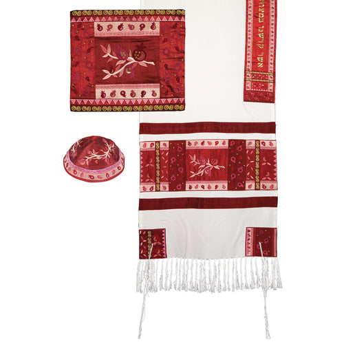 Tallit- Full Embroiderey Pomegranates- Pink (EM-TAH3P)